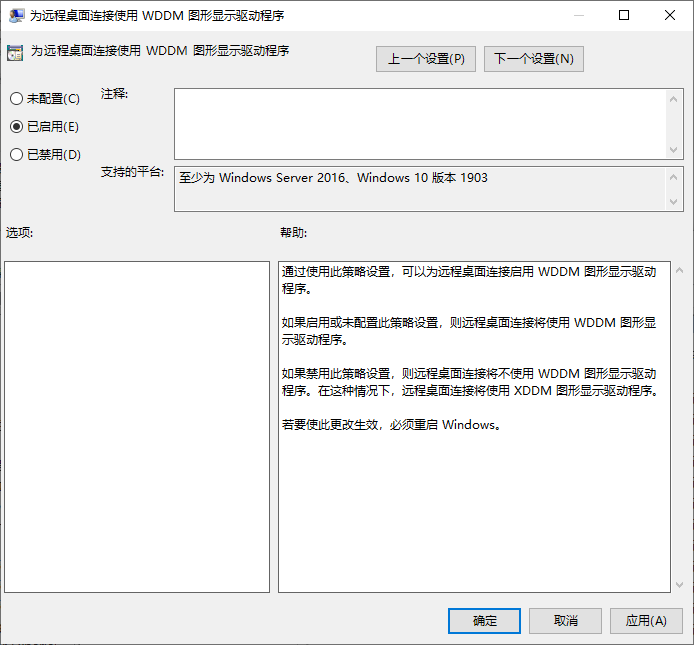 3、双击 为远程桌面使用WDDM图形显示驱动程序,勾选 已启用,点击 确定